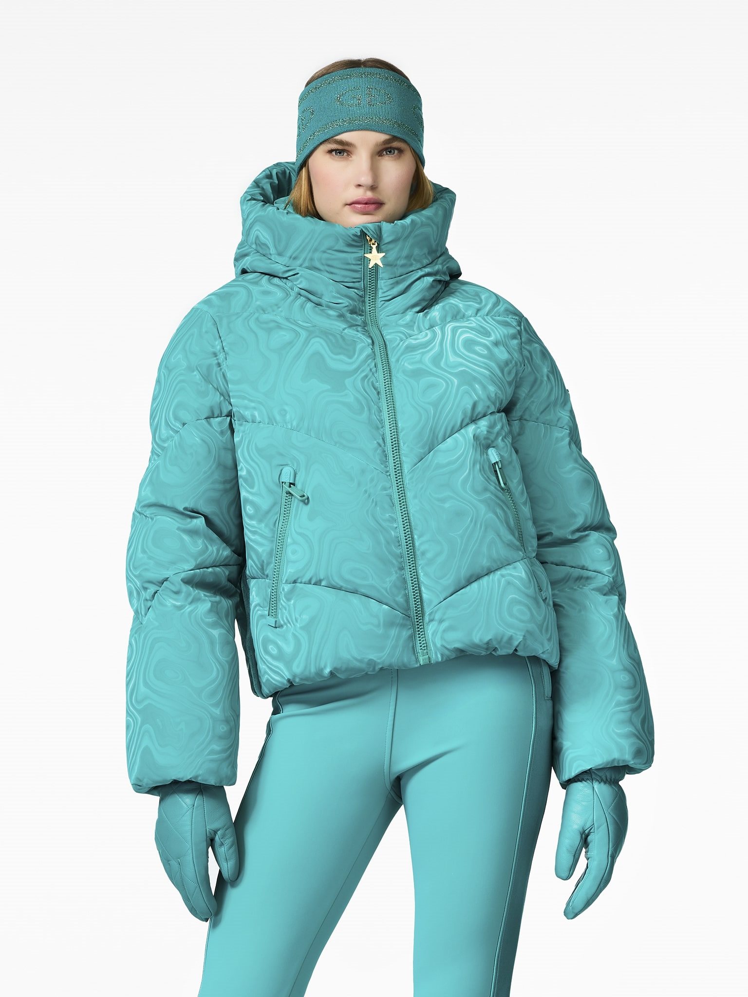 Swirl damast donsjack met capuchon.