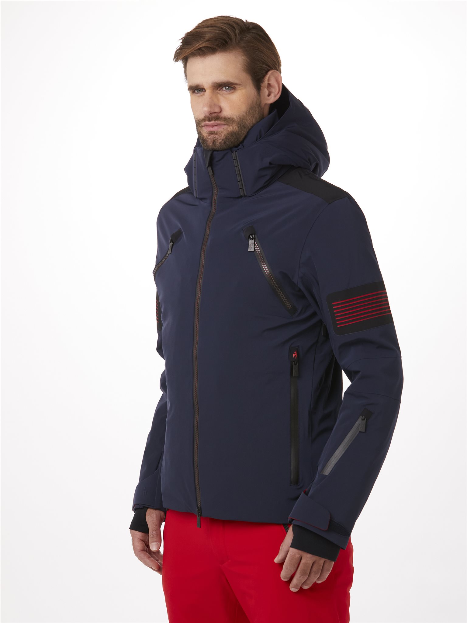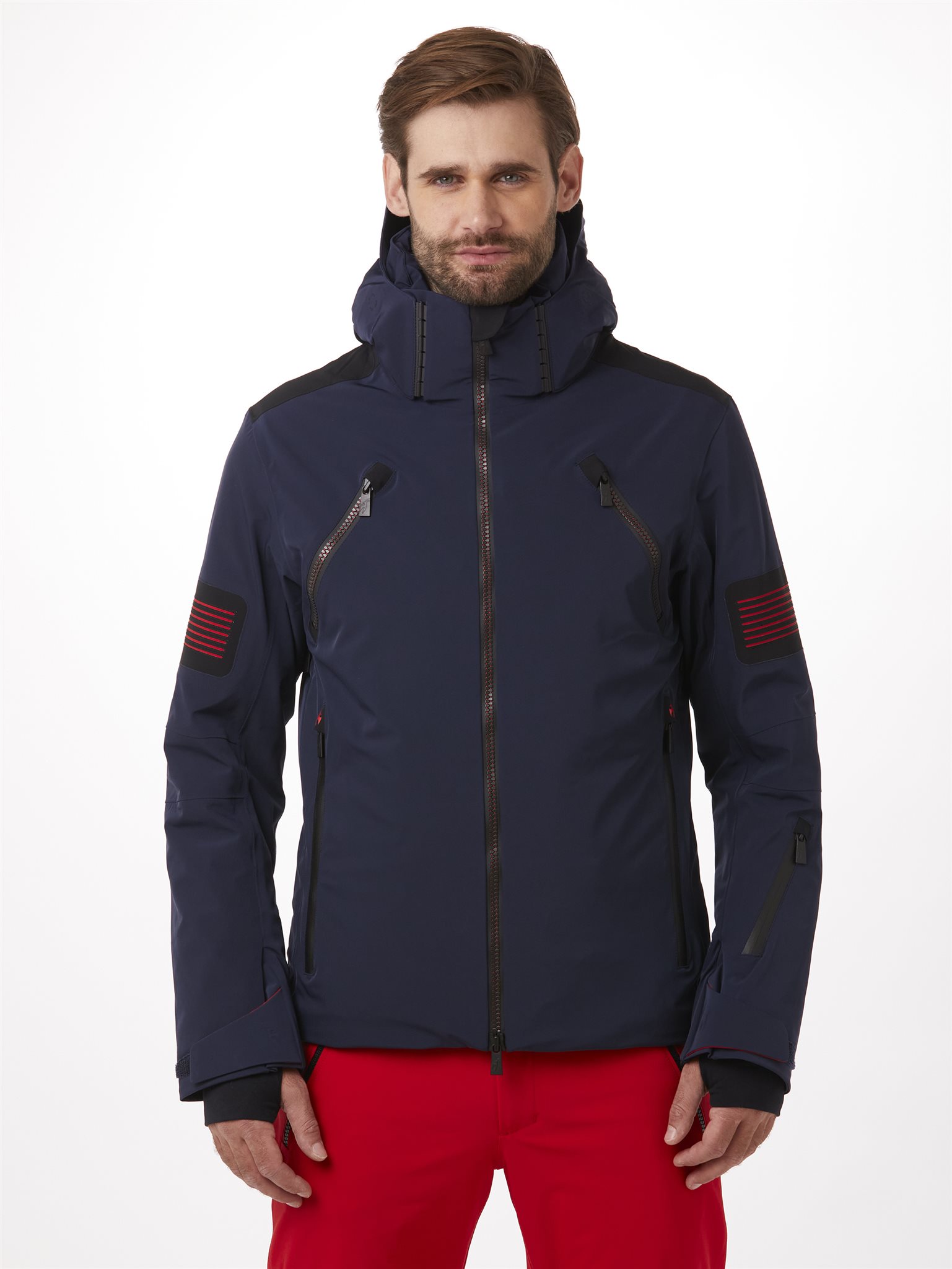 De lichte ALLAN ski-jas voor heren blinkt uit in prestaties, een technische uitstraling en YKK 2-weg VISLON® AquaGuard®-ritsen. Het Premium 4-way Stretch buitenmateriaal uit Japan vormt de water- en winddichte basis van dit sportieve model. De capuchon kan eenvoudig worden verwijderd dankzij een innovatief plug-in systeem. Kleurcontrasterende lasergesneden details, ventilatie onder de armen en vier buitenzakken en twee binnenzakken maken het ontwerp van deze ski-jas compleet. De OLAV first layer combineert perfect met deze Toni Sailer stijl.