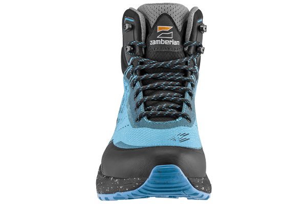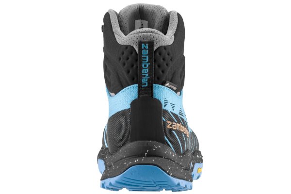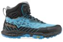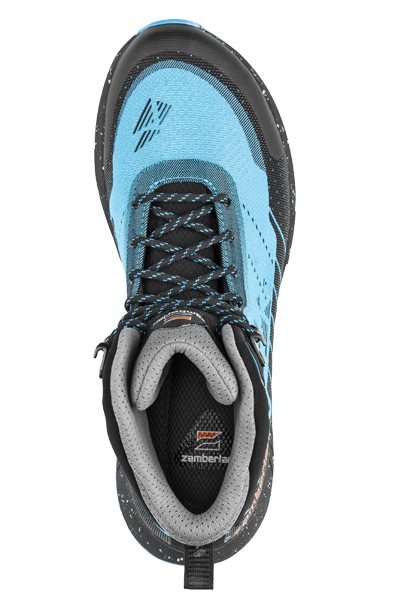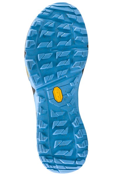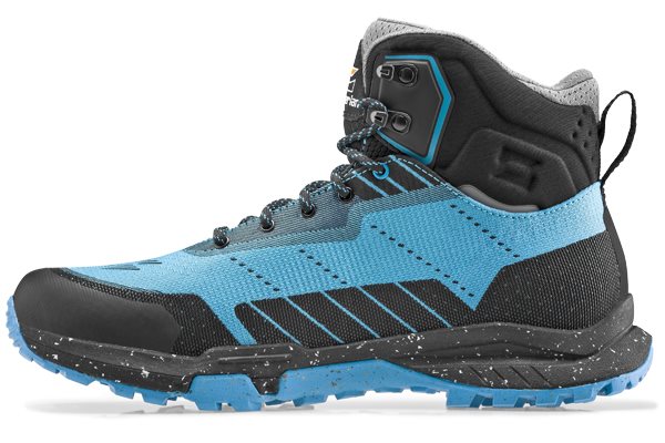 Het bovenwerk, gemaakt van gerecyclede jacquardstof, is ontworpen om zowel flexibel als duurzaam te zijn. Minder stiksels en strategisch geplaatste, slijtvaste inzetstukken op plekken die snel slijten, zorgen voor een langere levensduur. In de Mid-versie, met een hoogte van 15 cm, is de kraag hoger en flexibeler, wat zorgt voor gerichte enkelondersteuning — ideaal voor oneffen paden en gemengd terrein.