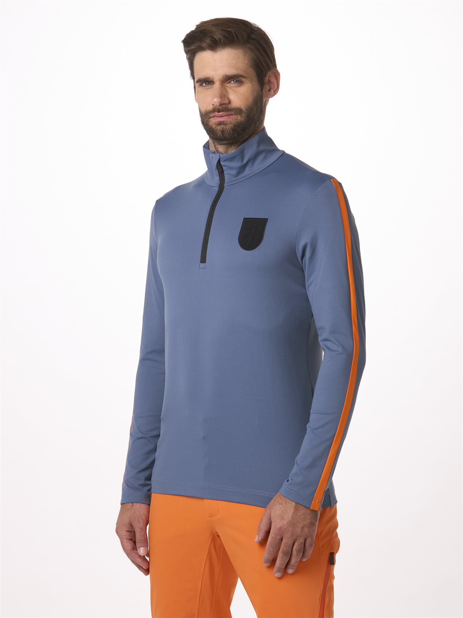 De GIORGIO eerste laag voor heren is ontworpen voor comfort en prestaties op de piste en is gemaakt van een lichtgewicht, ademend en sneldrogend functioneel shirt uit Frankrijk. Het unieke klassieke ontwerp heeft kleine contrasterende strepen op de mouwen, een ruginzet en een tweekleurige YKK®-rits.