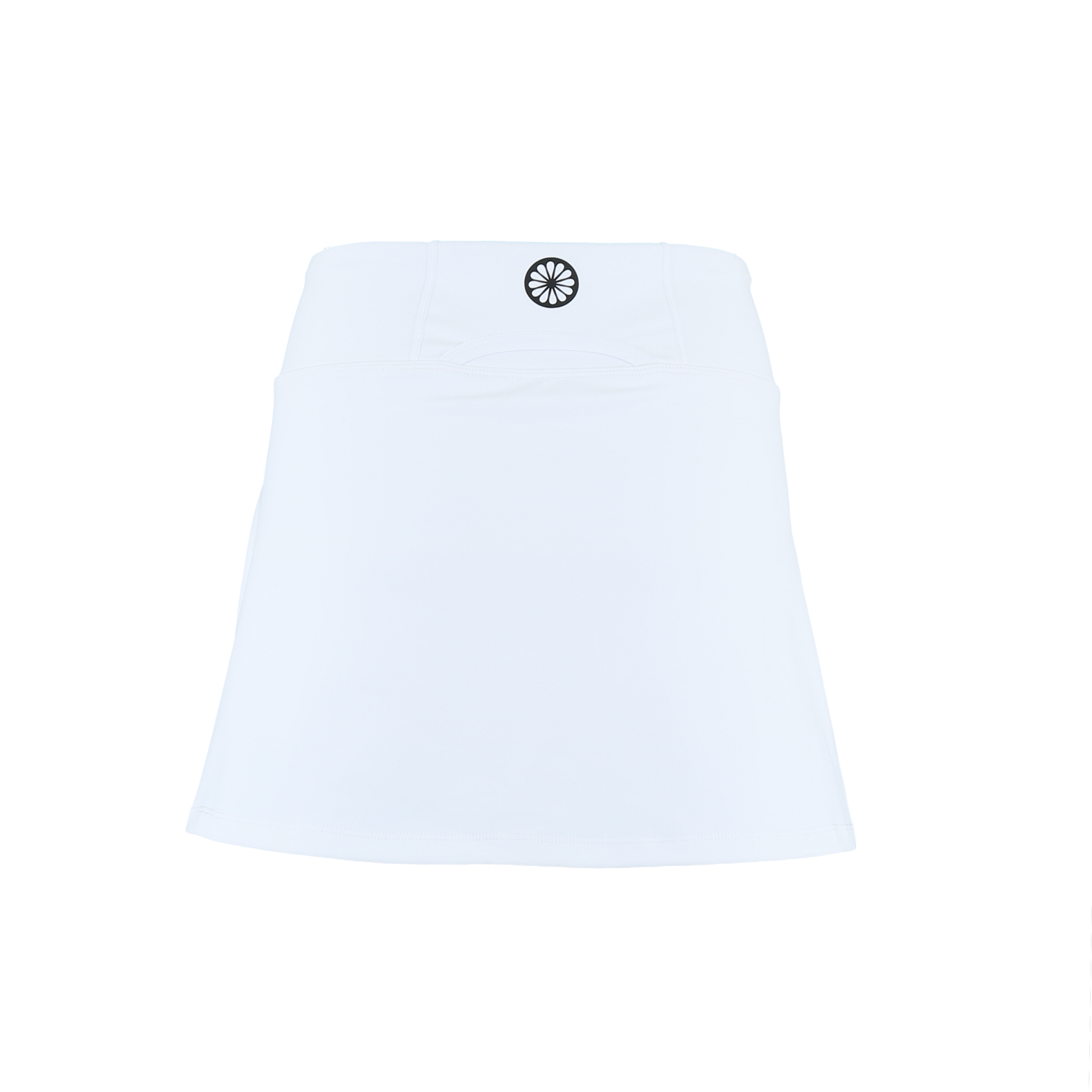 De Kadiri skirt is speciaal ontwikkeld voor tennissters/padellsters gemaakt van een mooie stevige stretch interlock jersey. Dit a-lijn rokje, met een binnen broekje en pijpjes, heeft verlegde zijnaden voor een slank silhouet. De hoge tailleband heeft een innovatieve bal-pocket en zorgt onder andere voor een perfecte fit