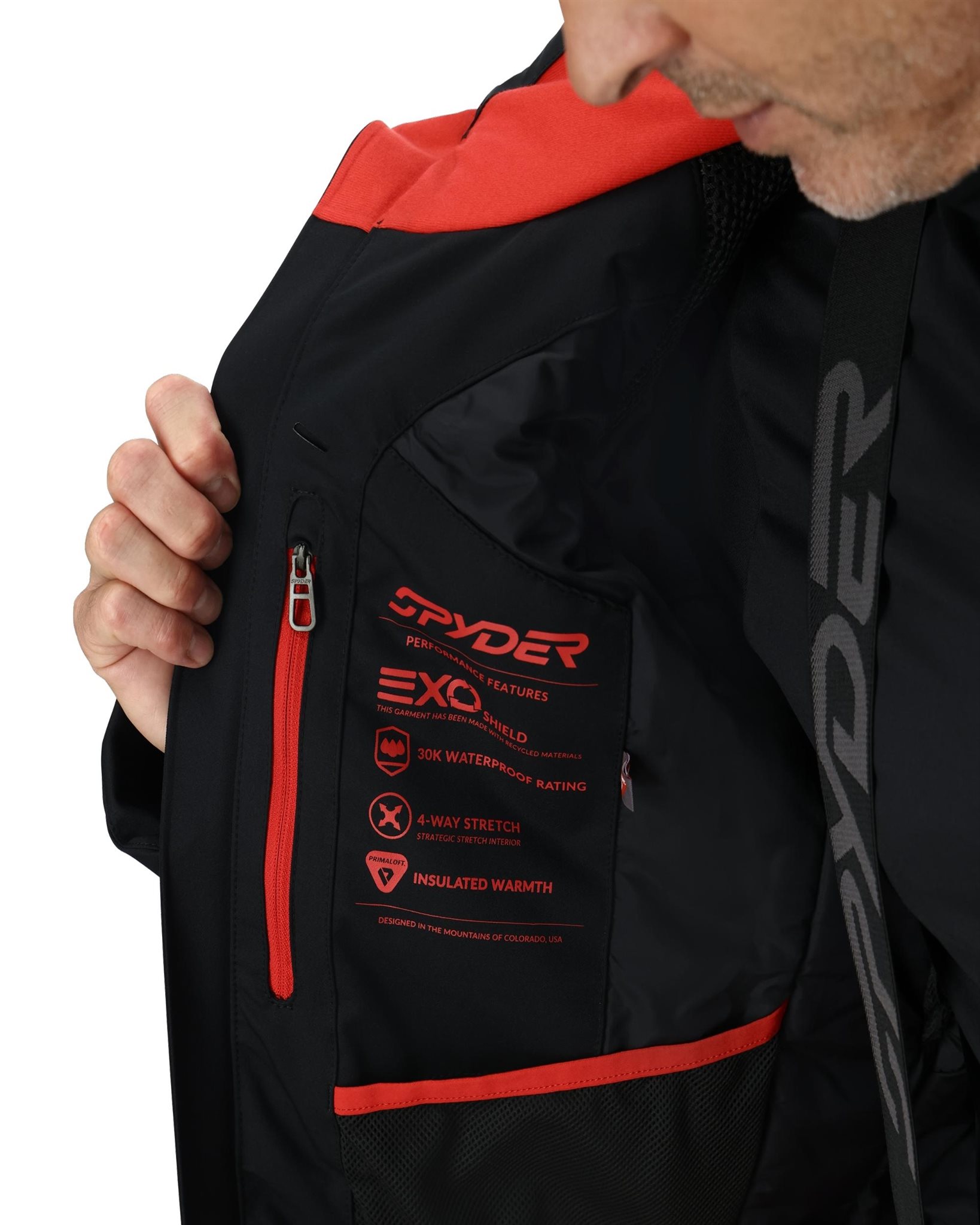 De Leader is al tientallen jaren een pijler in de Spyder-lijn. Deze jas is gemaakt van 4-way stretch EXO SHIELD 30K/20K-stof, wat zorgt voor optimale bescherming en functionaliteit. Hij is warm en waterdicht met 100 gram PrimaLoft® Black ECO-isolatie en getapete naden. De Leader-jas blinkt uit op de piste met doordachte details zoals een afneembare capuchon die geschikt is voor helmen, YKK® AquaGuard®-ritsen en ventilatie onder de armen.