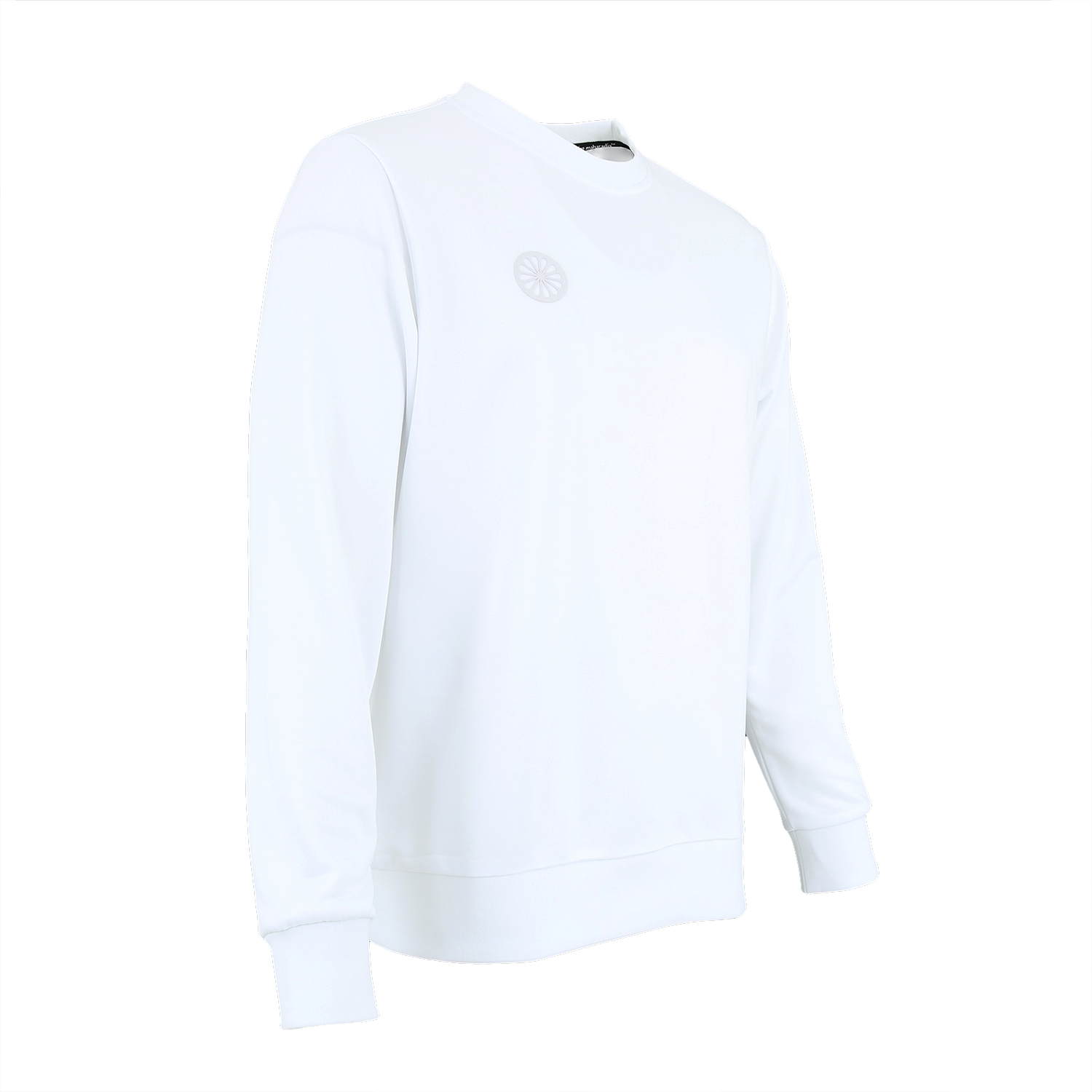 De Mumbai Sweater heeft ons logo op de mouw staan en is ideaal voor tijdens of na het sporten. De stof houdt namelijk de huid droog tijdens inspanning. Door het transpiratievocht snel naar de buitenkant te verplaatsen verdampt het vocht snel uit de trui.
