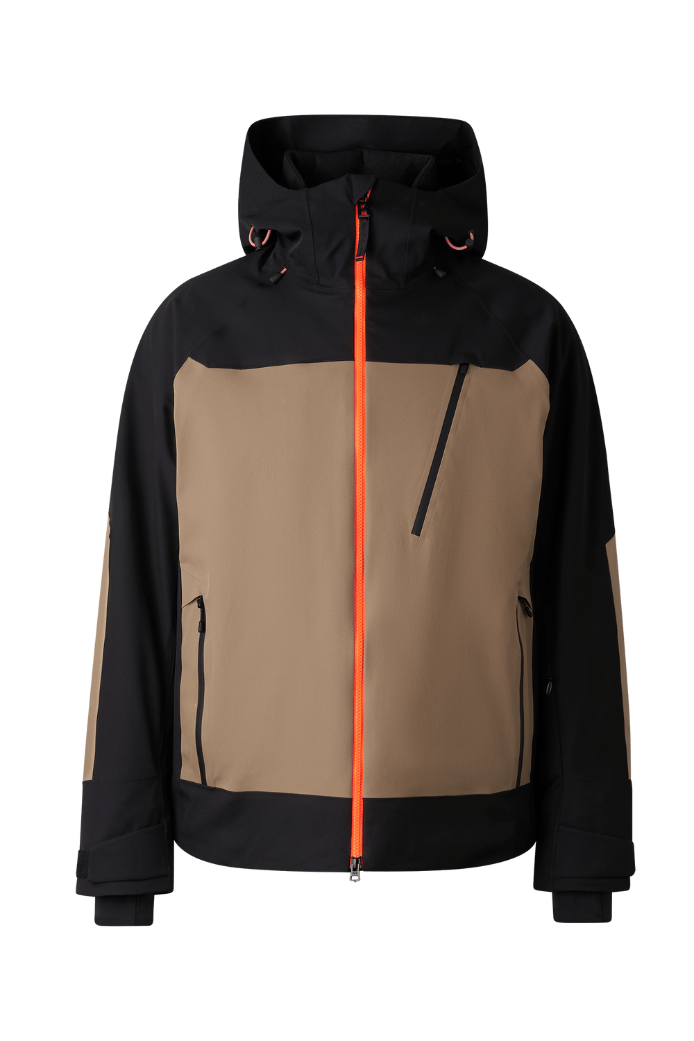 De Tajo ski-jas, met zijn 4-way stretchstof en volledig getapete naden, is een comfortabel kledingstuk voor wintersport. De stijl wordt versterkt door de verborgen tweewegritssluiting en de verstelbare capuchon, aangevuld met manchetten met klittenbandsluiting en elastische zomen. Het kleurblokdesign en de reflecterende logo-print maken de moderne look compleet.