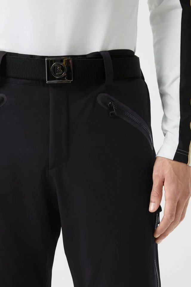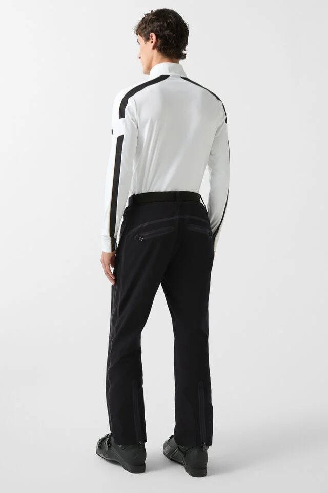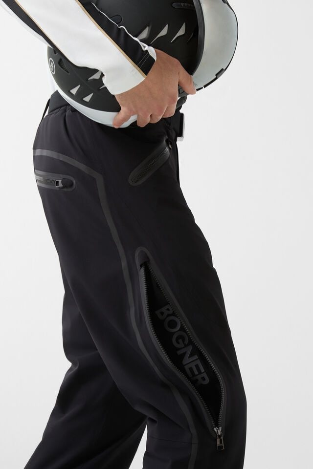 Broekspijpen met randbescherming, ritssluiting aan de achterkant en interne sneeuwvanger.