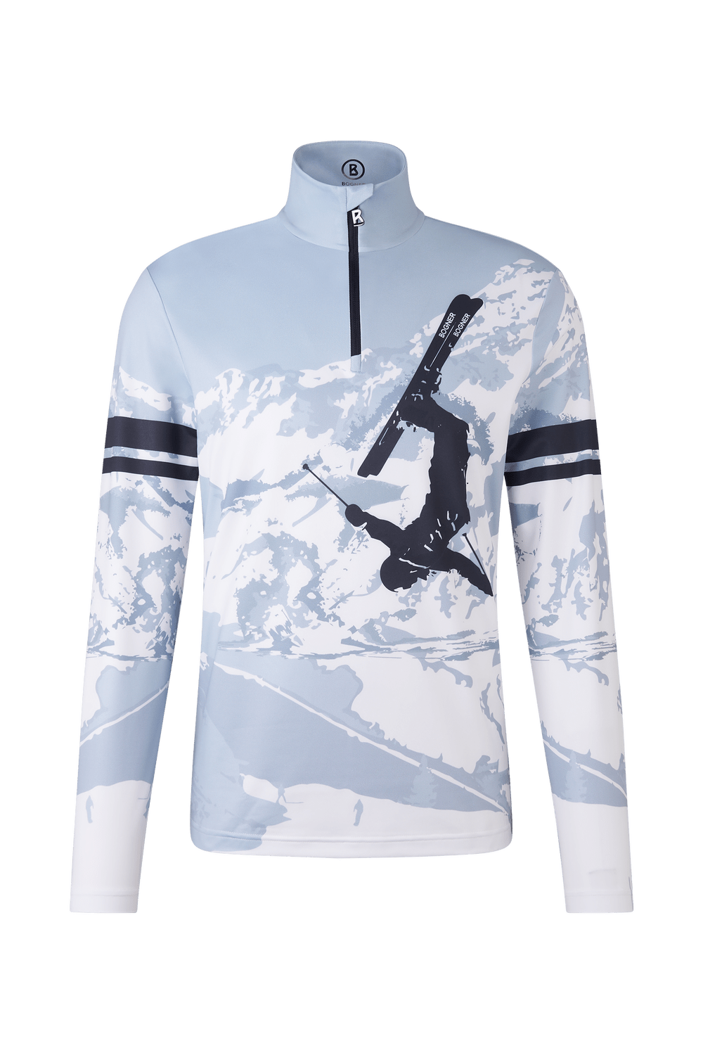 Het Verti-topje is een modern kledingstuk met een print in alpine-stijl en logo-details, perfect voor functionele outfits. De opstaande kraag met korte ritssluiting maakt de stijl compleet. De elastische stof, gemaakt van technische vezels, zorgt voor optimaal comfort.