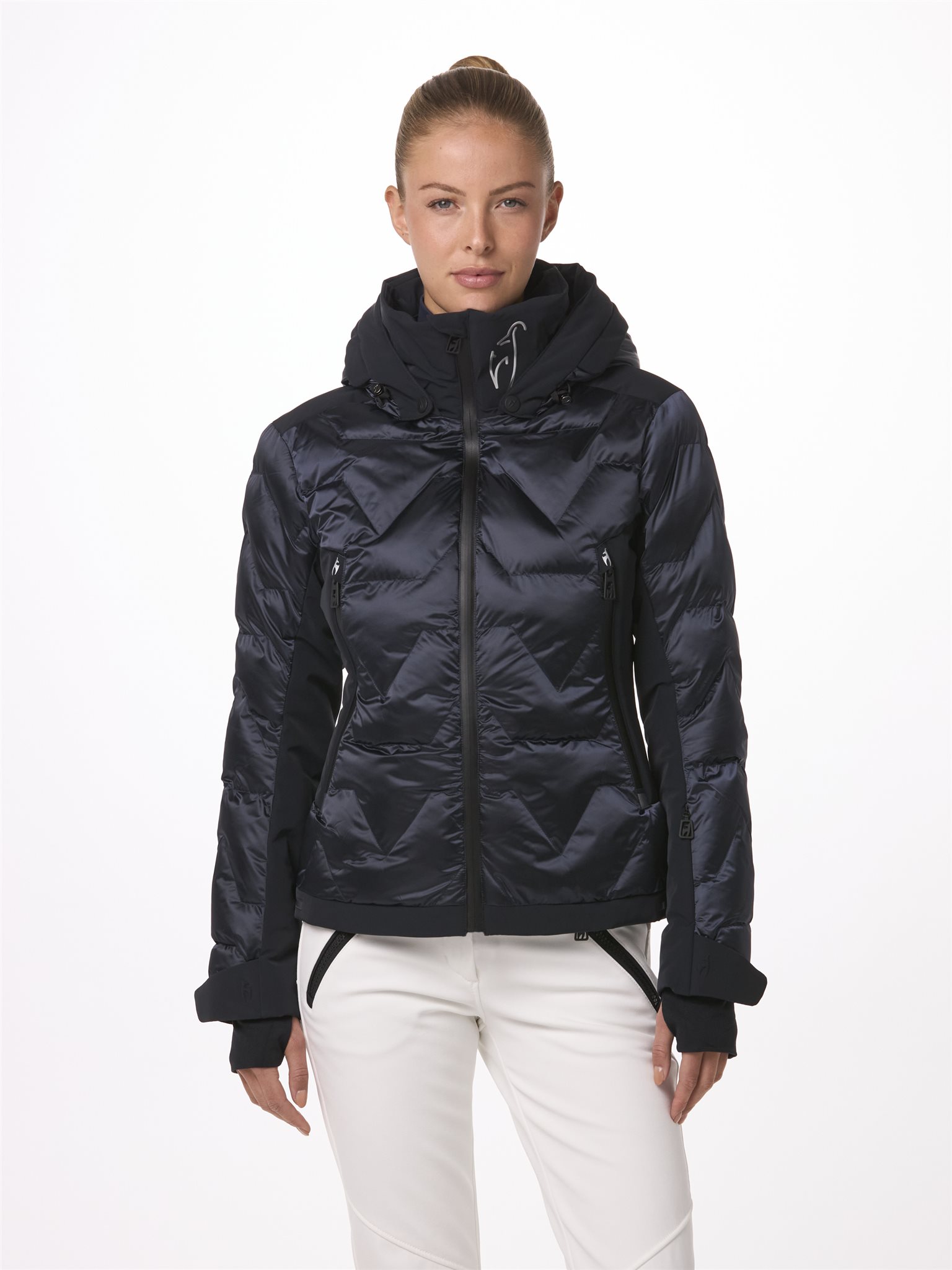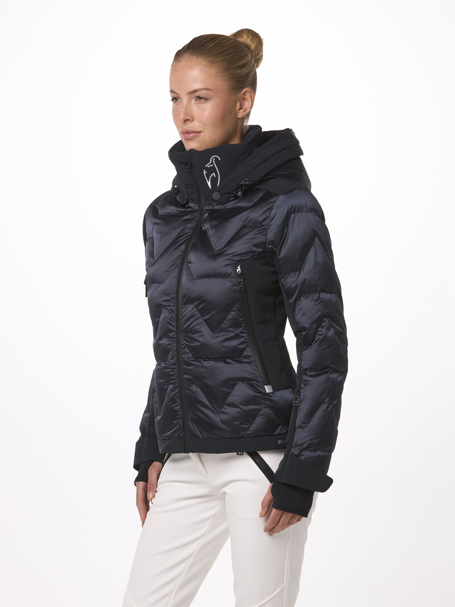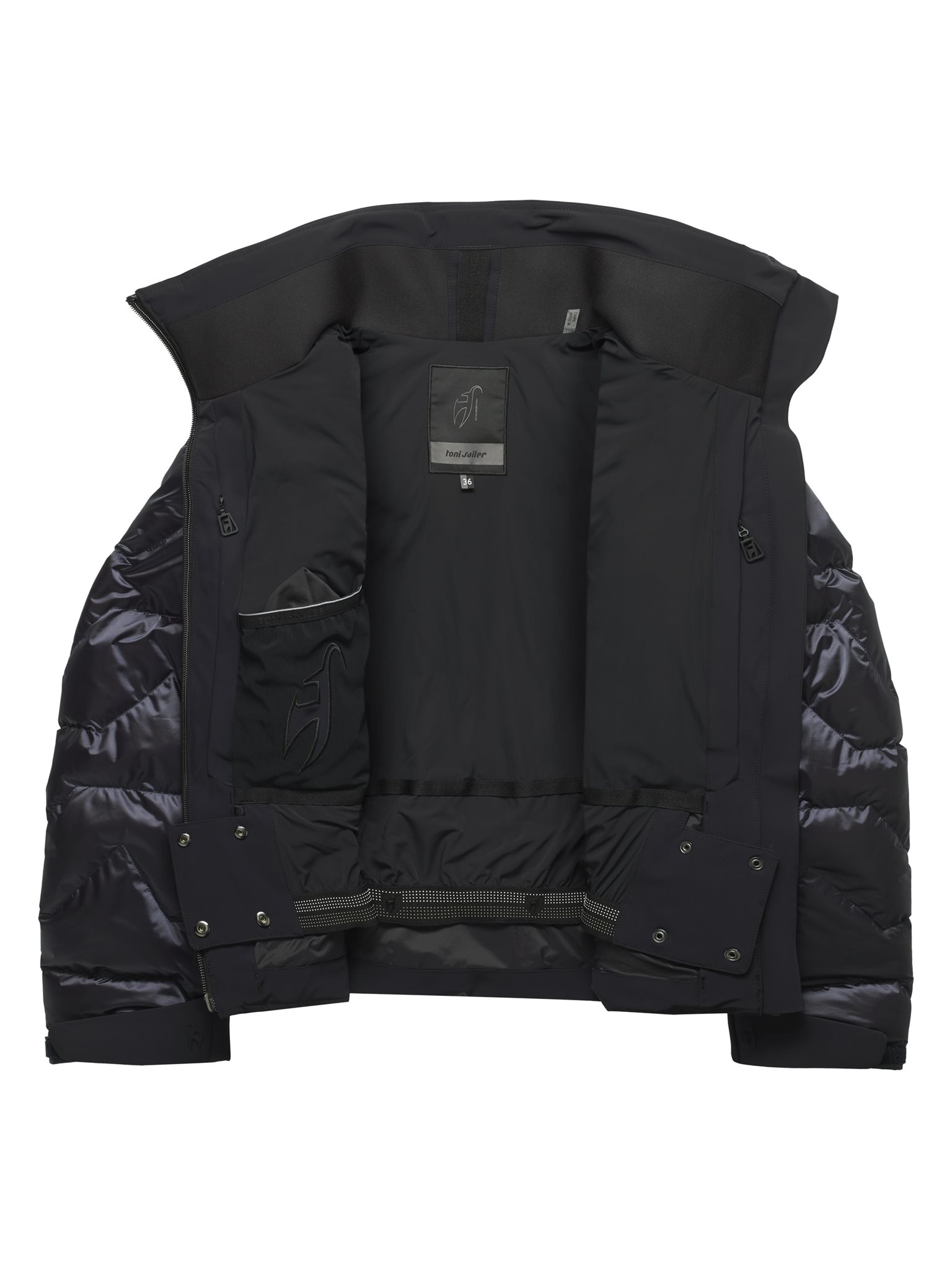 Uitgerust met alle functionele details van de ZOE ski-jas voor dames, toont deze SPLENDID-versie de extravagantie van onze luxueuze, glanzende nylon stof. De ZOE SPLENDID van Toni Sailer biedt 100% bewegingsvrijheid dankzij de hoogwaardige 4-way stretch achterkant.