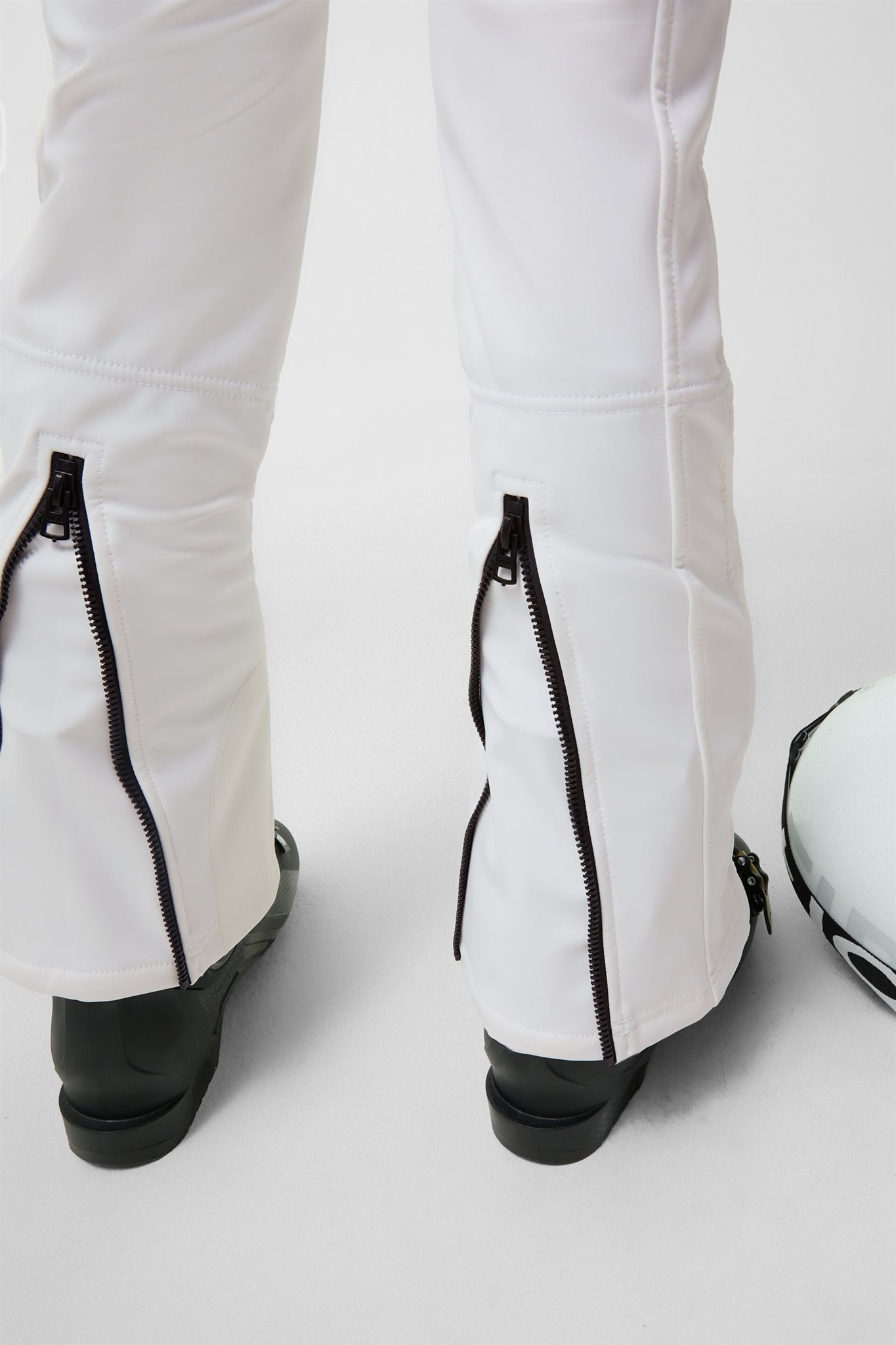Broekspijpen met randbescherming, ritssluiting aan de achterkant en interne sneeuwvanger.